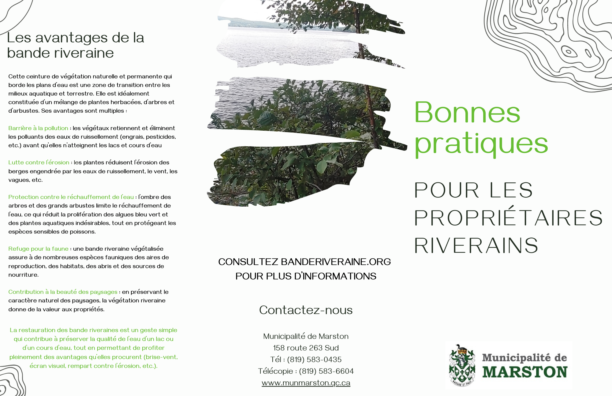 Nous vous invitons également à consulter notre dépliant qui fut créer afin d'adopter de bonnes pratiques pour les propriétaires riverains.