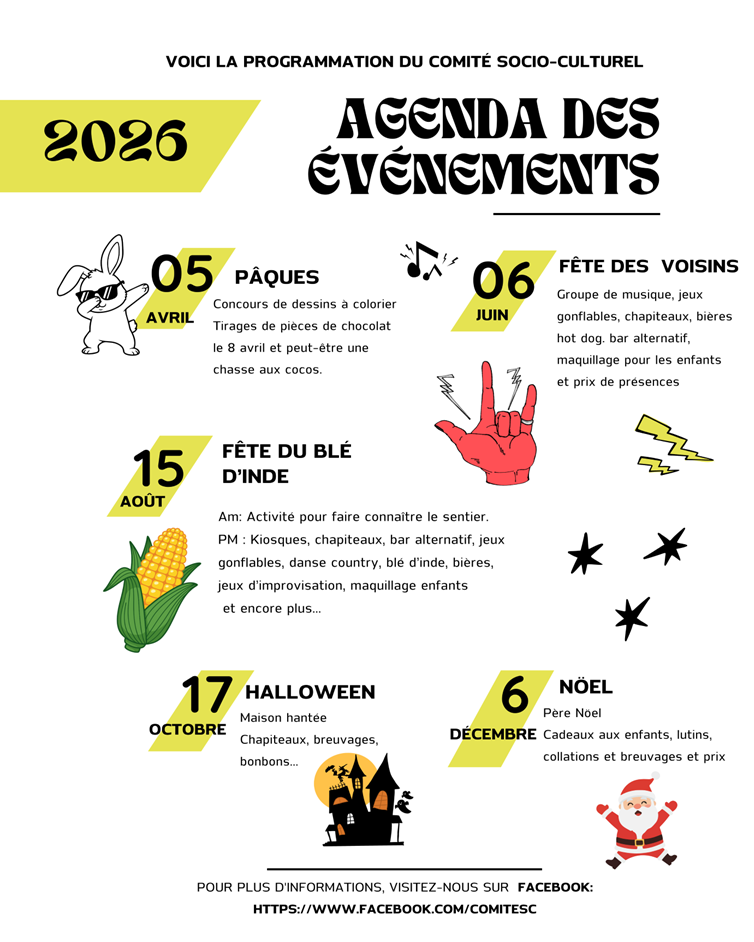 Le comité socio-culturel vous organise plusieurs événements au cours de l'année 2026.